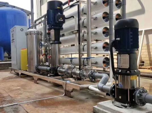 2、高壓泵:一般我們這里用的高壓泵都是水處理設備的專用增壓泵,能夠推進我們原水進入到我們的設備的工作環節中,特別是為反滲透設備提供強大的動力;